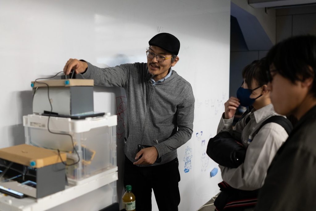 5回目の開催となるMeetup-5では、参加者が持ち寄った作品や研究のプロトタイプを、展示・デモンストレーション形式で共有・議論し、各自の研究や表現の可能性を広げる場として設けられ、前半に講演、後半にデモ会+交流会が行われた。